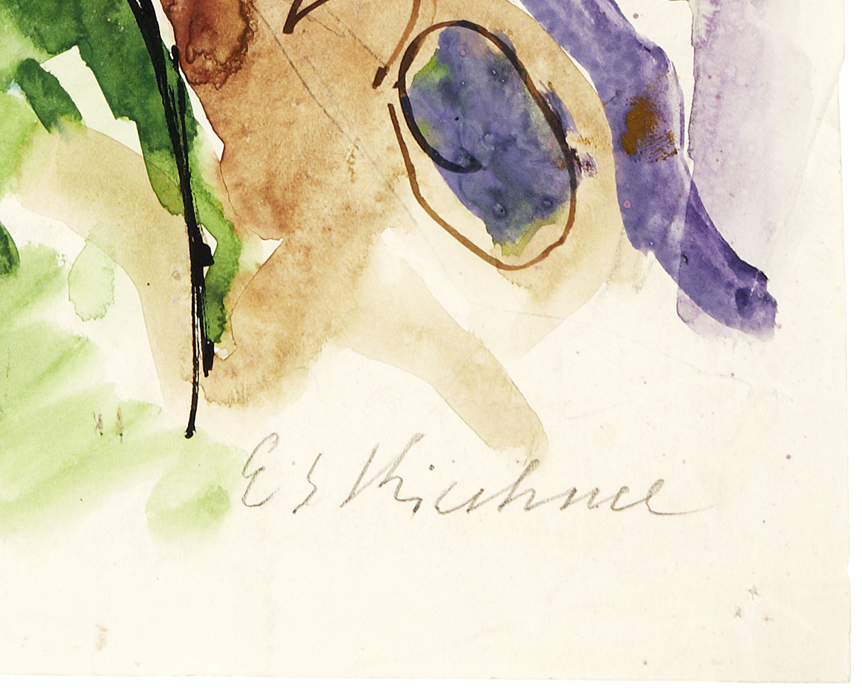 “Waldinneres”. Aquarell und Feder in Tusche. 1935 – 1936. Auf chamois satiniertem Papier. Unten rechts signiert “E.L. Kirchner”. Gerahmt.