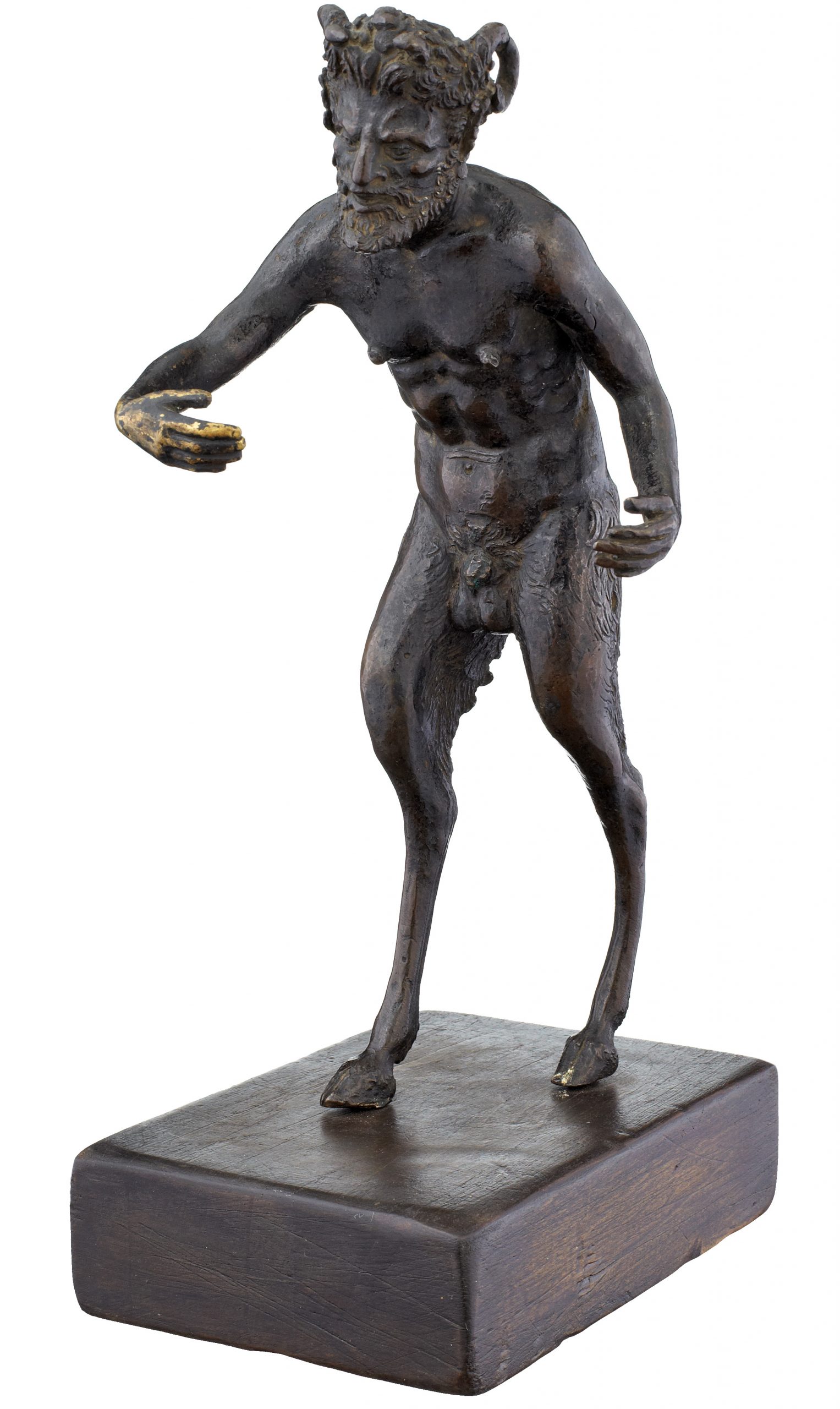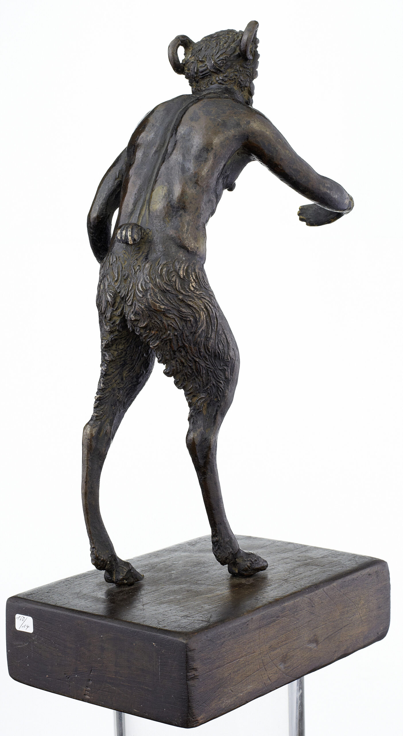 Italienische Schule, 18./19. Jh. “Satyr”. Bronzeskulptur. Reich nachbearbeitet. Dunkle Patina, partiell berieben. Höhe 27.5 cm